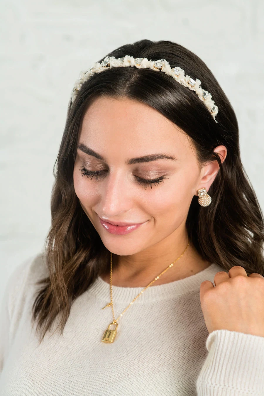 Add just a touch of sparkle to your tresses with the Phoebe Fluff Headband.