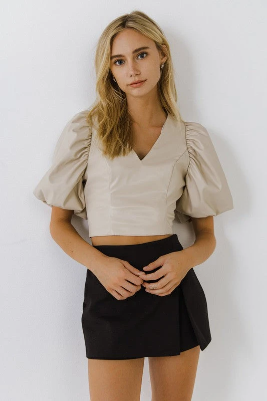 PU Puff Sleeve Top