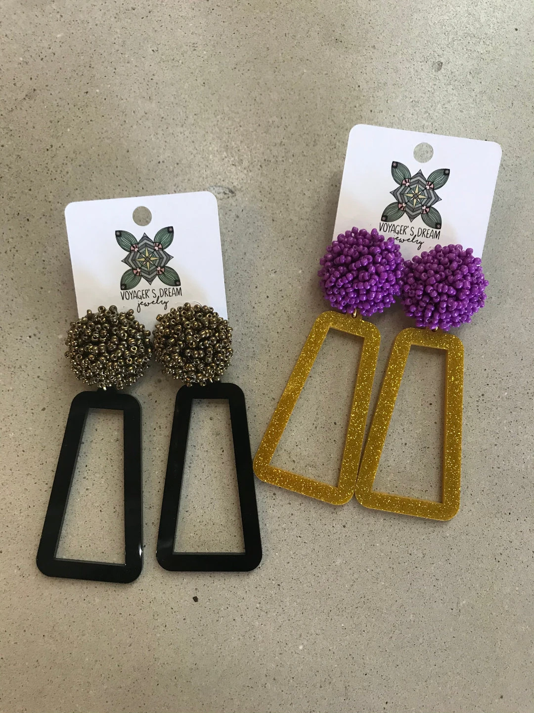 Beaded stud with rectangle acrylic! Perfect for gameday!