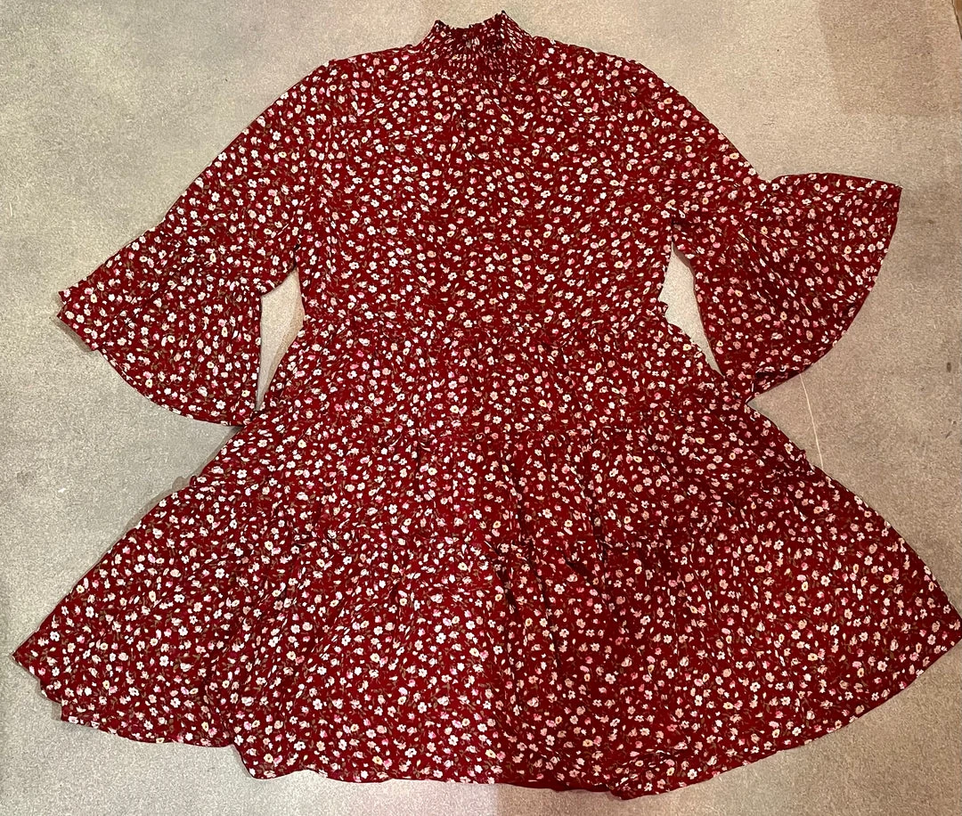 Red Floral Ruffle Dress