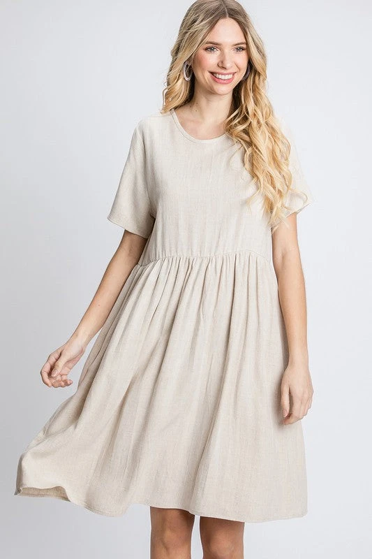 Baby Doll Style Dress With Keyhole And Button. Pockets On The Sides