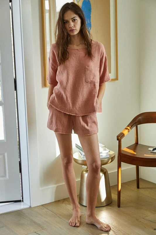Be the first to review “Wanderlust By Abby Short Sleeve Crew Neck Woven Over-Sized Top NEW” Cancel reply