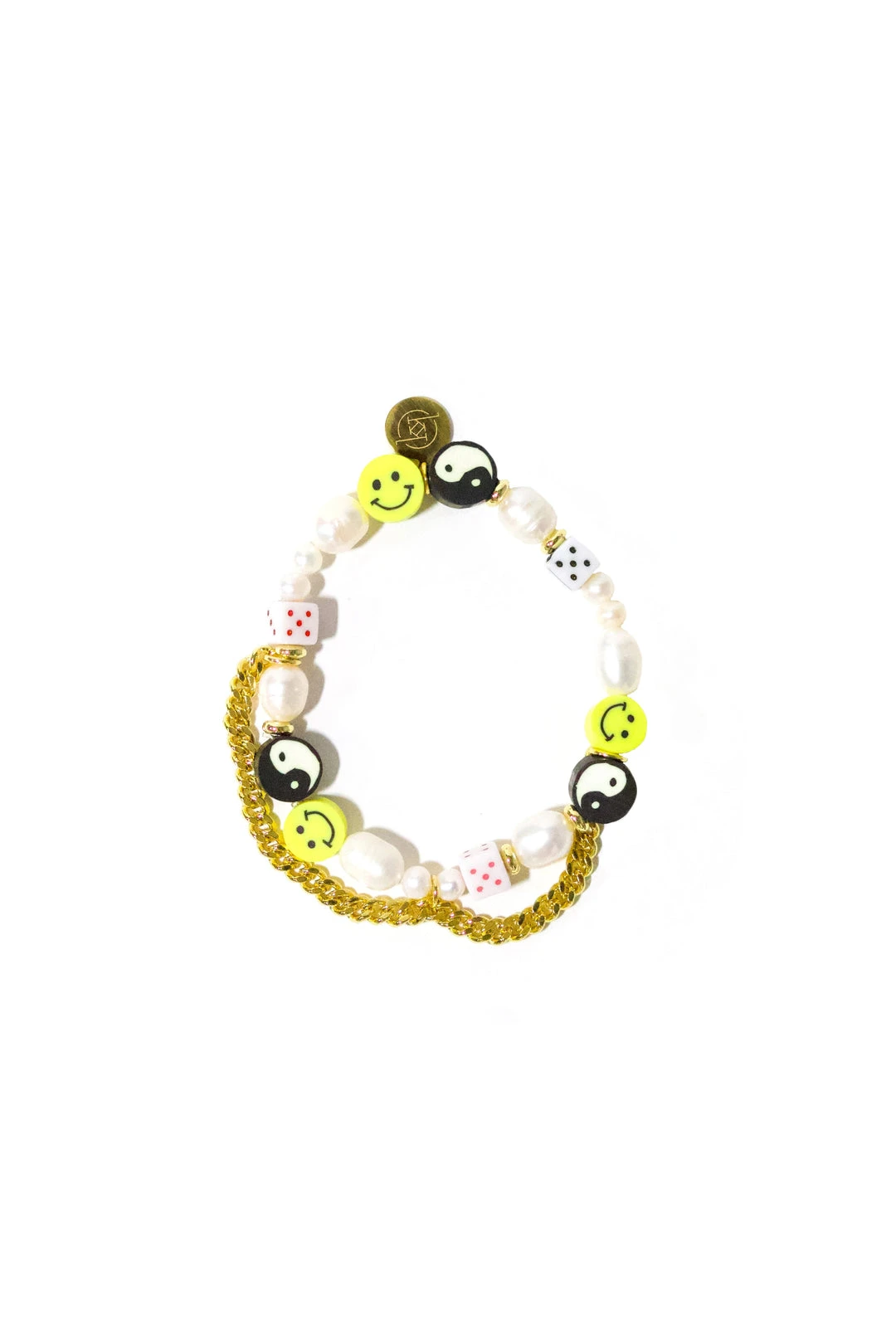 Bracelet with Pearl Beaded Yin Yang + Smiley Bracelet with Chain Accents