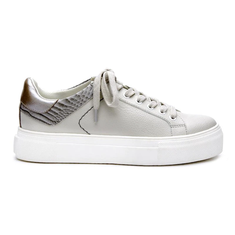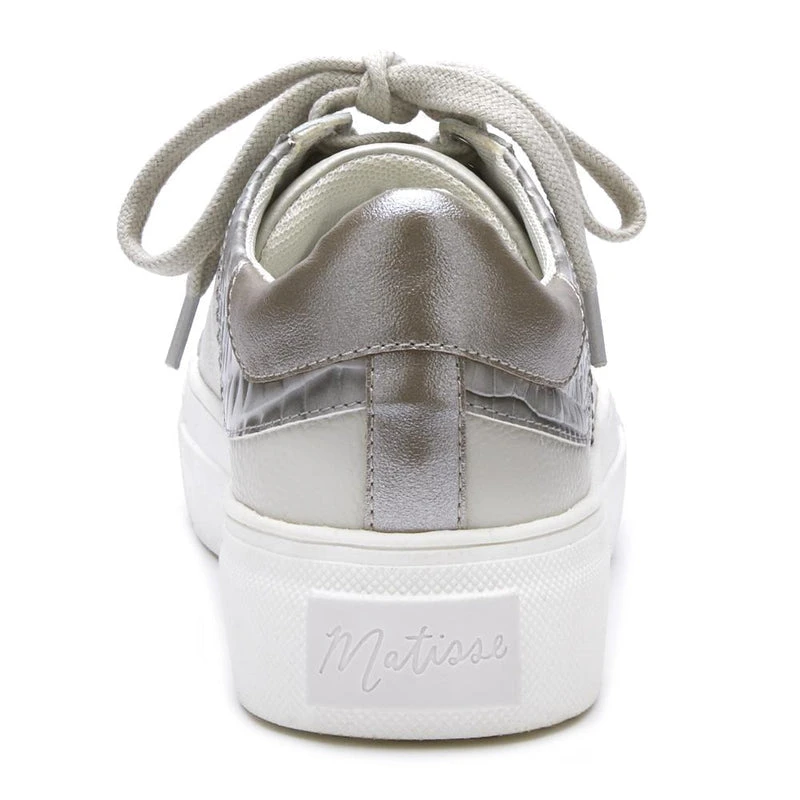 Simple white sneaker with added color and material on the counter piece.