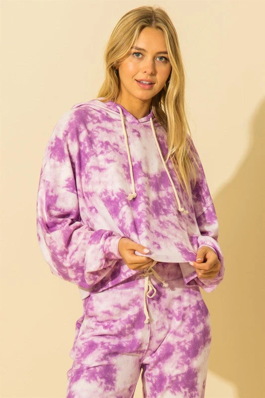 TIE DYE PRINT OVERSIZED BALLOON SLEEVE HOODIE