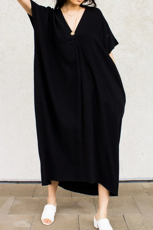 V Neck High Low Midi Dress