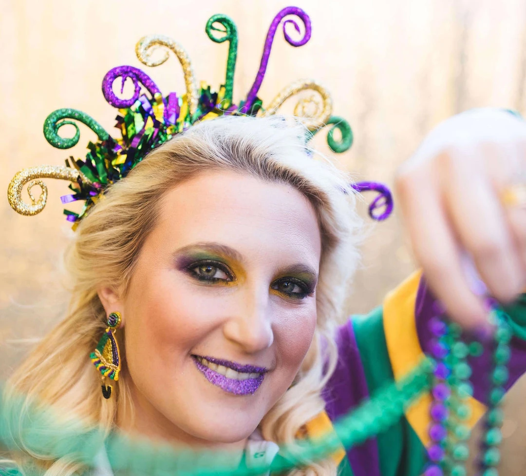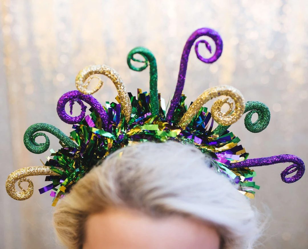 This whimsical headpiece design captures the essence of Mardi Gras perfectly!