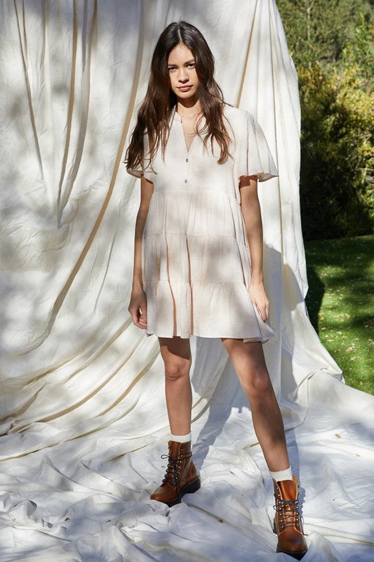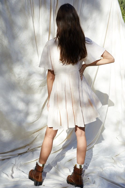 Woven Gauze Short Sleeve Babydoll ruffled Dress with lining